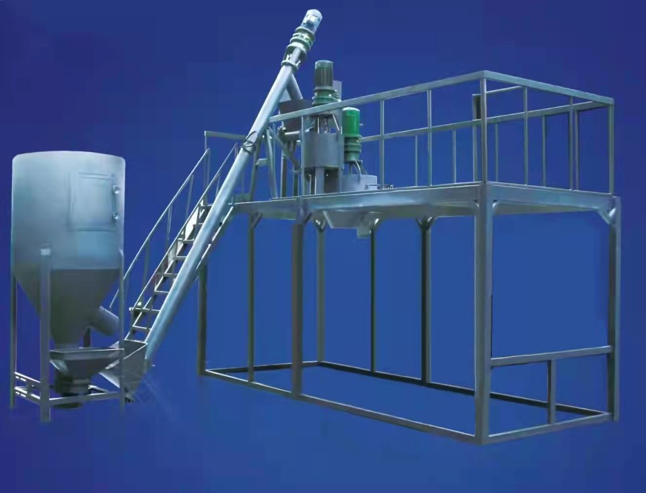 이 시스템은 합리적인 설계와 높은 자동화를 자랑하며, 표준 장비에 비해 1~2명의 인력을 절감하여 생산 비용을 낮추고 생산 효율성을 높입니다. T자형으로 배열된 이 시스템은 컴팩트하며, 미리 정의된 중량 비율에 따라 유제와 물을 혼합 탱크에 공급하는 자동 습식 분말 믹서를 통합합니다. 설정된 시간 동안 혼합되면 슬러리가 탱크에서 저장 배럴로 자동 배출됩니다. 추가 혼합 후, 작업자가 조작하는 밸브가 혼합물을 컨베이어로 분배하고, 컨베이어는 이를 EPS 코팅을 위해 그라우팅 기계로 운반합니다.